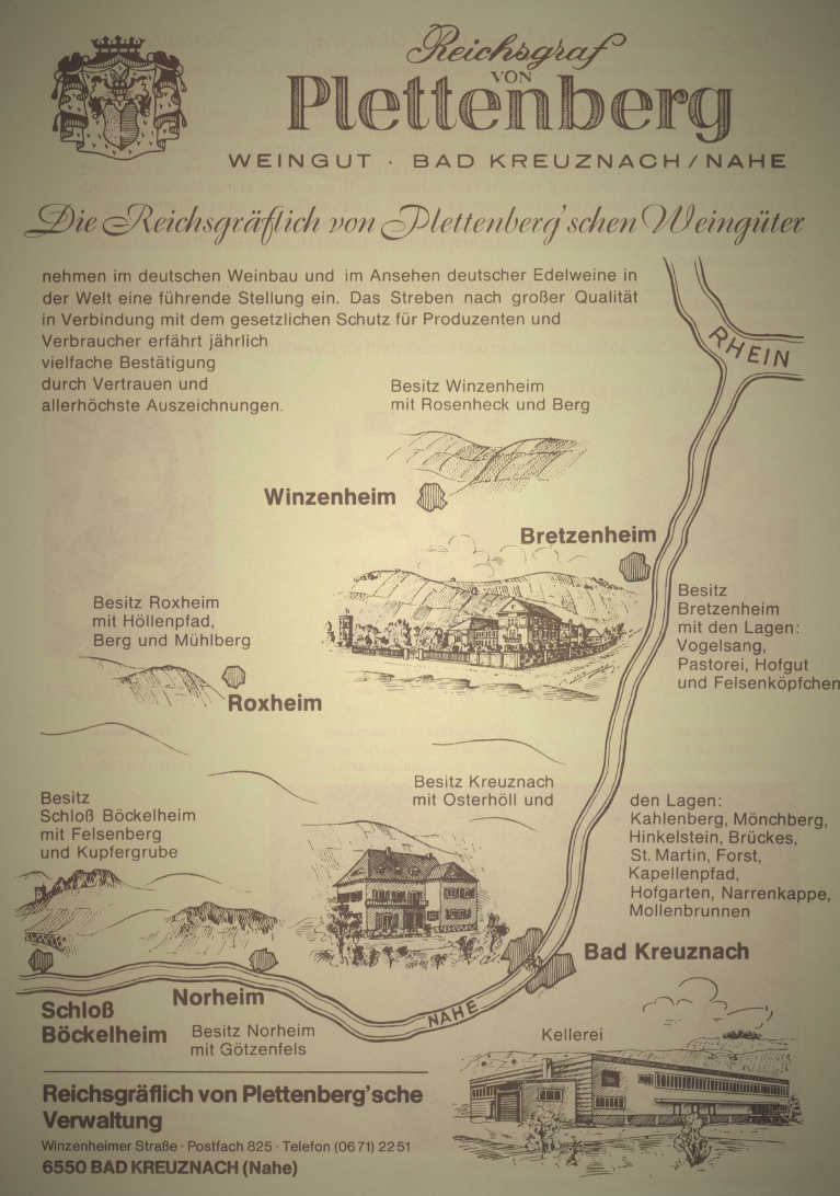 Nach seinem Studium zum Diplom-Landwirt in Göttingen übernahm Egbert Reichsgraf von Plettenberg 1985 das Weingut gemeinsam mit seinem Cousin Franziskus Reichsgraf von Plettenberg. Der hohe Qualitätsanspruch wurde fortgeführt, wobei Egbert u.a. von 1991-1993 dem VDP Nahe vorsaß.