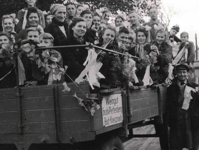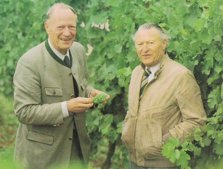 Friedrich-Christians Söhne Egbert (1917-1995, re.) und Wolfgang (1922-2012, li.) Reichsgrafen von Plettenberg leiteten das Weingut von 1948 – 1985, wobei Egbert u.a. Gründungsmitglied des Weinland Nahe e.V. war.
